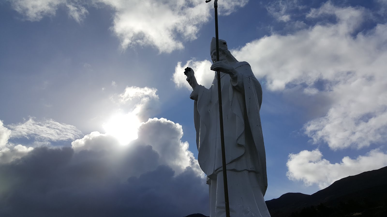 Reading of your weather-related trials, including hail, at "Croagh Patrick, the mountain hard on the Atlantic Ocean", I'm reminded of Hymn 370, "St. Patrick's Breastplate" -- his prayer of hope for God's help in adversity: "I bind unto myself today the virtues of the starlit heaven, the glorious sun's life-giving ray, the whiteness of the moon at even, the flashing of the lightning free, the whirling wind's tempestuous shocks, the stable earth, the deep salt sea, around the old eternal rocks."